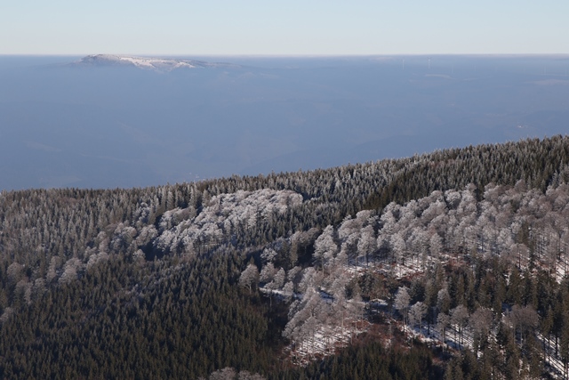 Vom warm-gemäßigtem Klima in den tiefen Lagen bis hin zum hochmontanen Klima in den Berglagen mit viel Regen, schneereichen Wintern und einer kurzen Vegetationsperiode. Während die Jahresmitteltemperatur in den unteren Lagen 10,8 °C beträgt, sind es am Gipfel nur 4,8 °C. Im Jahresmittel fallen 1600 mm Niederschlag auf dem Gipfel, im Tal nur 900 mm.Vor allem im Herbst und im Winter herrschen oft Inversionswetterlagen: Auf dem Gipfel blickt man dann über die Wolken der Rheinebene hin zu den Vogesen und Alpen.